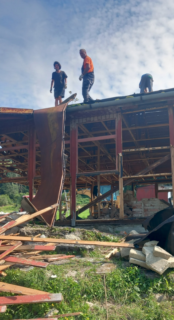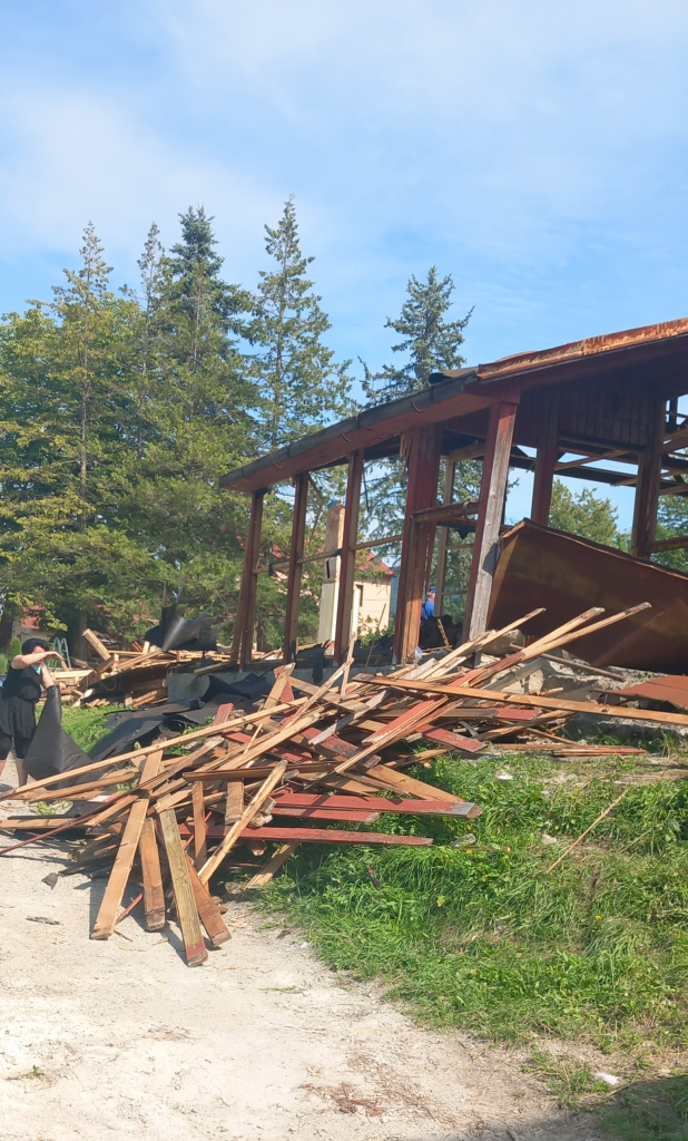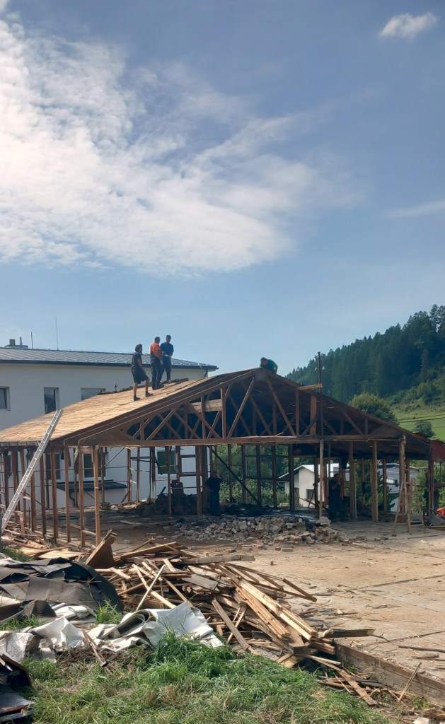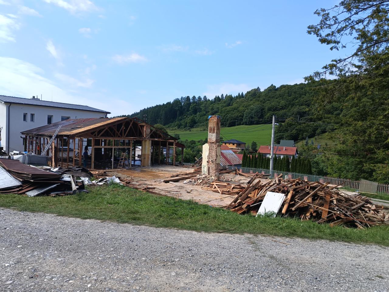 Napriek veľmi slabej účasti našich obyvateľov a veľkej horúčave sa podarila veľká vec a zdevastovanú škôlku sme zbúrali. Našli sa ľudia, ktorí sa nebáli ťažkej práce a prišli pomôcť.