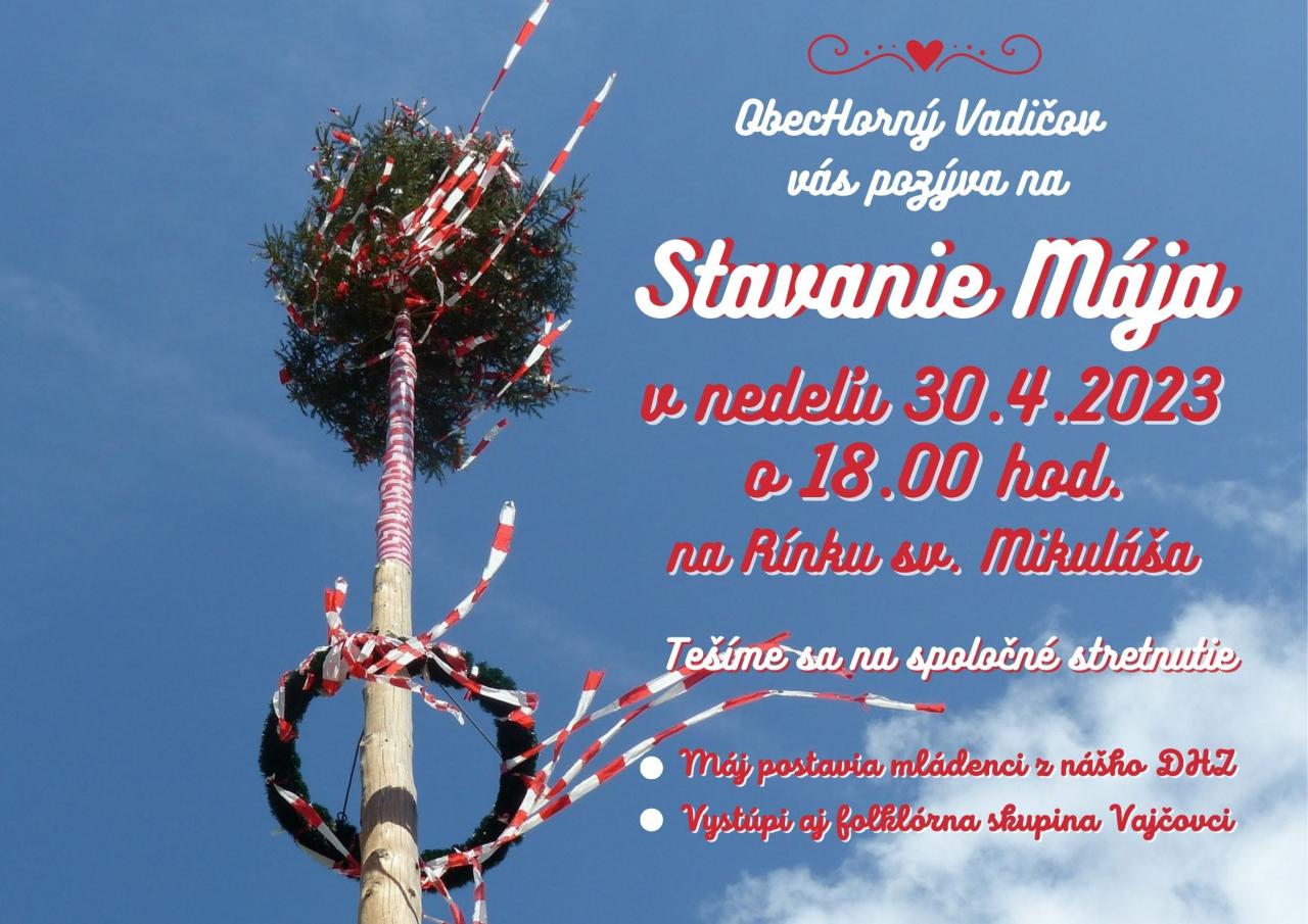 Srdečne Vás pozývame na "Stavanie mája", ktoré sa uskutoční v nedeľu, 30.04.2023, o 18.00hod. na Rínku sv. Mikuláša. Tešíme sa na spoločné stretnutie.