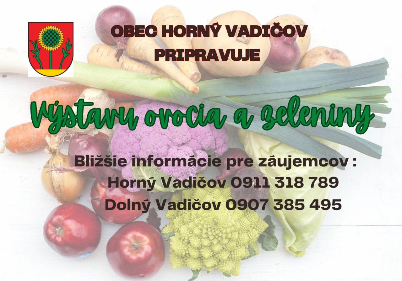 Obec Horný Vadičov pripravuje v septembri výstavu ovocia a zeleniny spojenú s ochutnávkou. Hľadáme pestovateľov, záhradkárov, ktorí odprezentujú výsledky svojej práce.